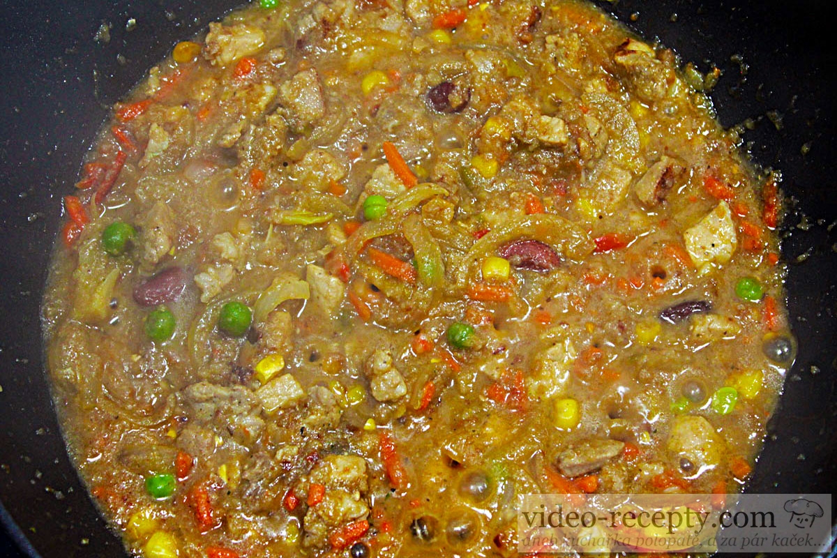 7. Zahustíme dvoma lyžičkami solamylu rozmiešaného v troške vody, necháme chvíľku - asi 30 sekúnd podusiť, a je hotovo. Videorecept ako zahustiť omáčku nájdete TU.