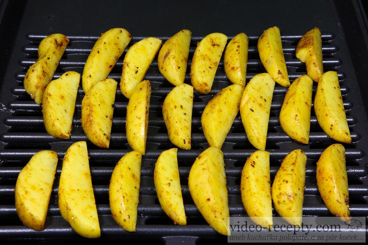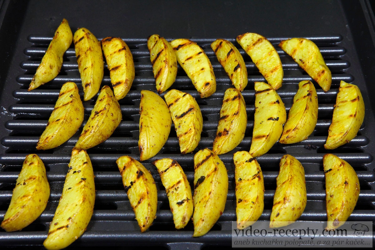 - Grilujeme pri teplote okolo 220°C z každej strany okolo 12 minút podľa veľkosti mesiačikov. Je lepšie, ak používame pokrievku, pretože zemiaky sú potom menej vysušené.