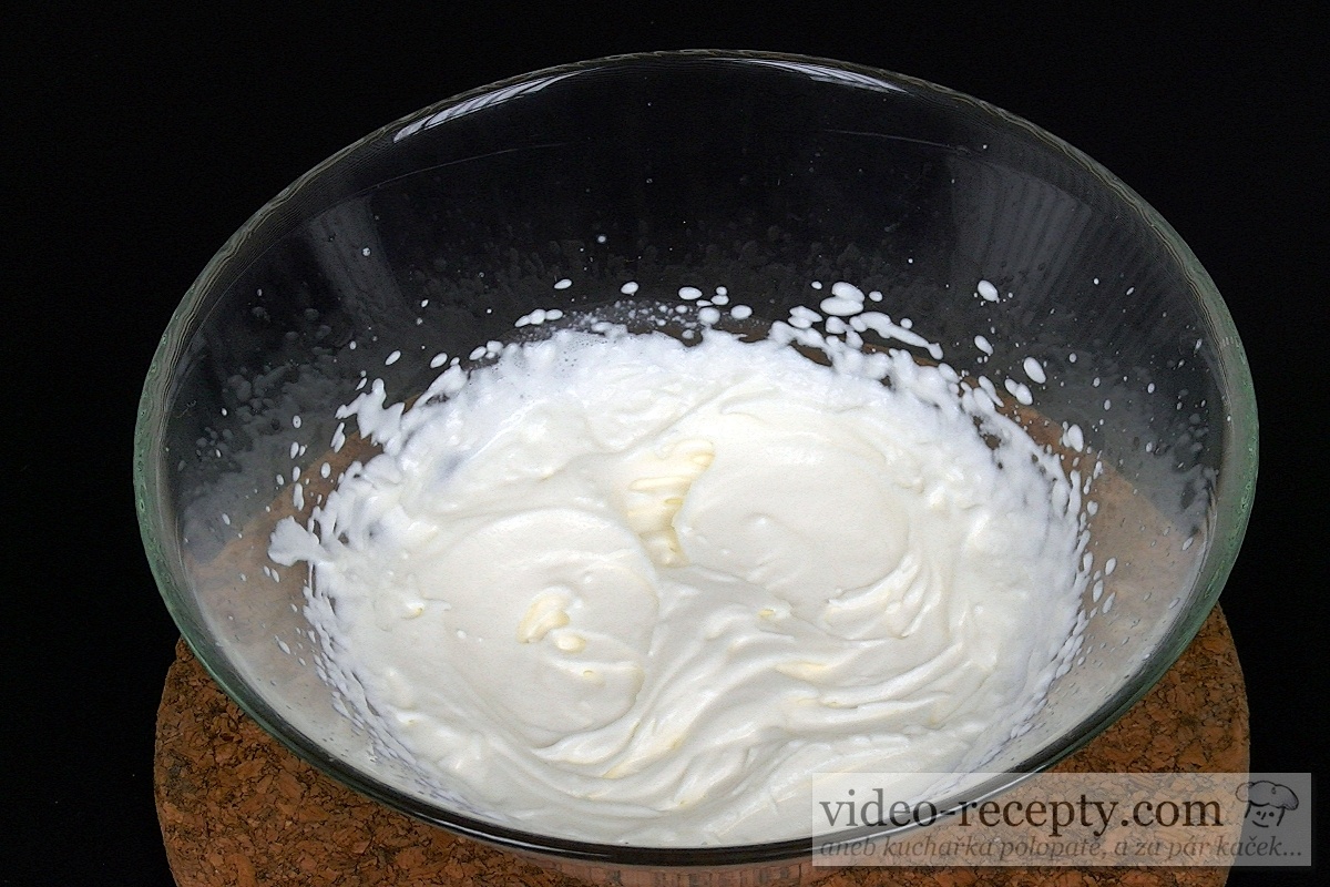 - V ďalšej miske ušľaháme 100 ml smotany na šľahanie.