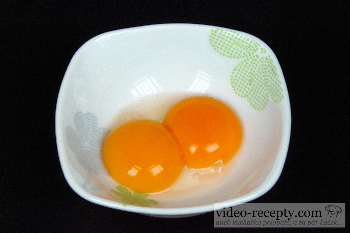- K chladnej čokoláde pridáme dva žĺtky, a vmiešame je metličkou.